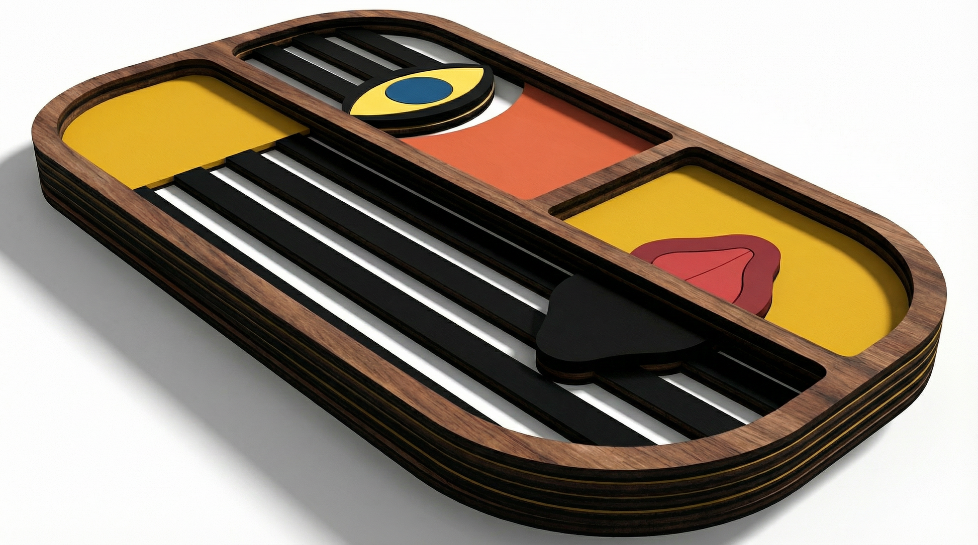 A handcrafted decorative wooden wall piece, designed with attention to detail and made from carefully selected materials. Built from four layered MDF panels (5 cm each), it creates a bold 3D depth and a refined sense of dimension and texture. Its clean shapes and thoughtful color composition give it a distinctive, modern look.