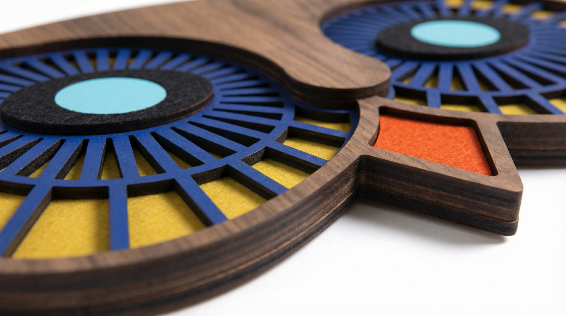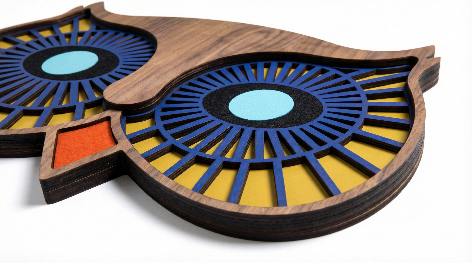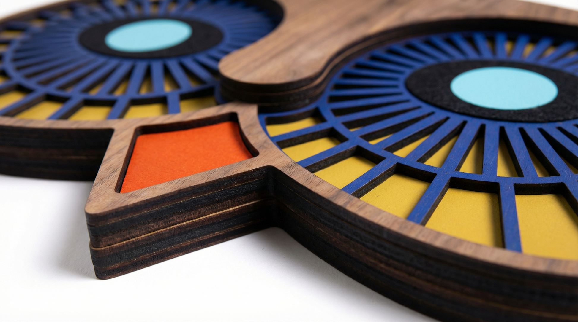 A handcrafted decorative wooden wall piece, designed with attention to detail and made from carefully selected materials. Built from four layered MDF panels (5 cm each), it creates a bold 3D depth and a refined sense of dimension and texture. Its clean shapes and thoughtful color composition give it a distinctive, modern look.